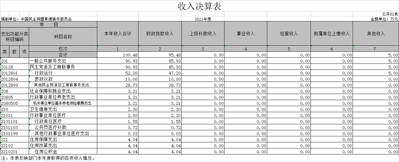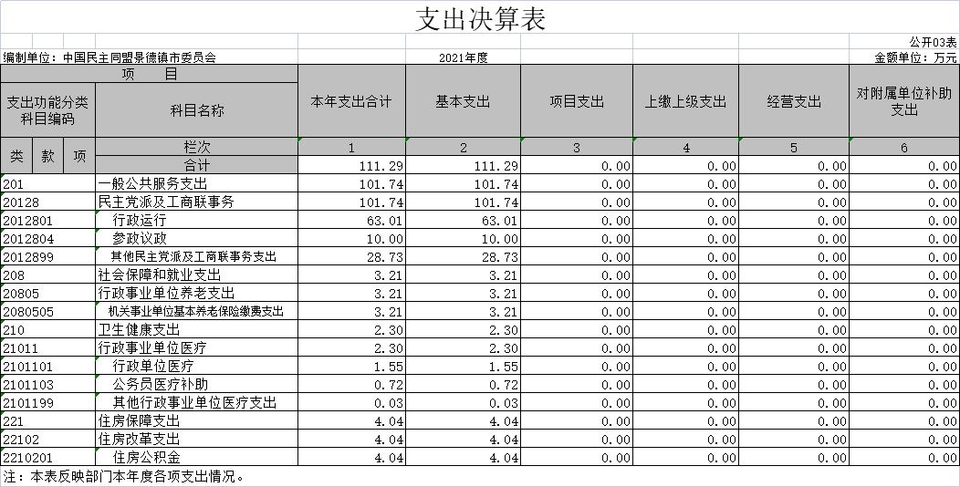 中国民主同盟景德镇市委员会2021年度部门决算