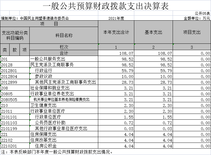 本部门2021年度一般公共预算财政拨款基本支出108.07万元,其中: