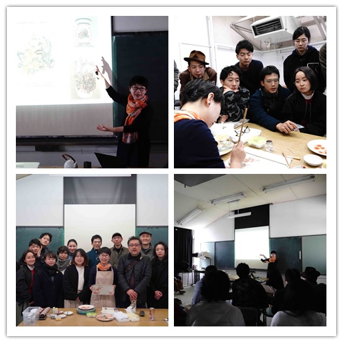 2019年12月3日,景德镇陶瓷大学民盟支部主委刘乐君副教授应森野彰人(Akito Morino)教授的邀请为日本京都市立艺术大学( Kyoto City University of Arts)的师生做了主题为《景德镇陶瓷的传统与现在》讲座。“京都市立艺术大学”始建于1880年,是日本知名的五大艺术院校之一,京都市立艺术大学设有美术学部和音乐学部,其中美术学部的陶瓷器专攻是该校较出色的专业。讲座在该校陶艺系的“构思室”进行,刘乐君老师针对“景德镇陶瓷的传统”和“景德镇陶瓷的现在”两个部分做阐述,分别对景德镇陶瓷的制瓷历史、工艺和绘画特点做了介绍,对景德镇陶瓷绘画对日本陶瓷绘画的影响及两者之间的关系做了重点解析,并对自己从事陶瓷艺术研究和创作做了分享,对毕业生的陶瓷创业和在景德镇的生存状态进行了案例分析。整个讲座内容丰富,图文并茂、并穿插了刘老师陶瓷创作过程的精彩视频。讲座结束后,刘乐君老师兼用了景德镇陶瓷材料和京烧的色绘陶瓷材料和手法做了陶瓷绘画的创作及演示,引起了在场师生的极大兴趣和关注,讲座和演示过程中,多有提问和互动,与师生之间的交流较为深入。