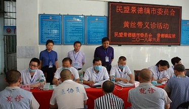 6月10日上午,民盟景德镇市委会组织盟内的医疗专家赴江西省景德镇监狱开展“黄丝带”义诊活动。民盟市委会主委王安维,副主委祝金标、陈菊明以及机关干部参加活动。