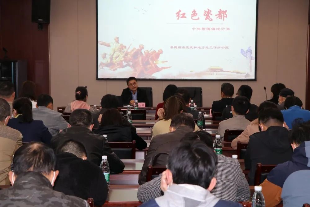 彭仁华作了题为《红色瓷都》的中共党史专题报告。围绕“红色瓷都”这一主题,通过重大事件、重要人物和革命遗迹三个方面,以时间为主轴,用翔实的历史资料和大量的研究成果,紧密联系景德镇革命、建设和改革发展实践,以鲜明的观点、精辟的语言,生动讲述了中国共产党领导人民探索革命道路、社会主义建设道路和改革开放道路的伟大历史,把中国共产党100年的奋斗历程,清晰地呈现在大家面前。