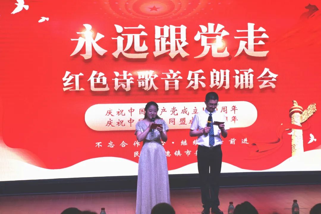 演出以中国共产党成立100周年,中国民主同盟成立八十周年为核心脉络,运用音乐、舞蹈、诗歌朗诵、戏剧等多种表现形式,带领大家共同感悟初心,体会家国情怀,用文字和声音的力量,为党的百年华诞献上祝福礼。整台诗歌朗诵精彩纷呈,红色教育深入人心。接下来,让我们一同欣赏精彩演出瞬间吧!