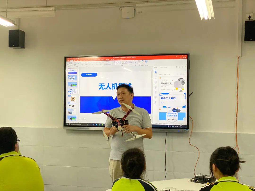 此次科普活动分为科普大讲堂、介绍组装航空模型、无人机试飞三个环节。在理论讲解环节,景德镇机电工程学校盟员、无人机专业教师王斐详细讲解了无人机的制作原理及机械结构,帮助同学们从理论上全面掌握无人机的制作原理。