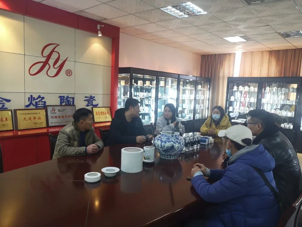 1月18日,民盟景德镇市直属昌江支部主委安祥带领支部盟员代表前往景德镇金焰瓷业有限公司开展优化营商环境调研活动。景德镇金焰瓷业有限公司负责人陪同。