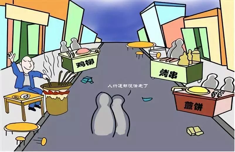 占道经营食摊点卫生质量不达标,产生的垃圾随意乱丢,严重影响市民的健康和环境卫生。在城区,越是人流量大、车流量多的地方,流动摊点聚集的越多。行人因为摊点占道堵塞而小心侧身移步,车辆因为摊点占道堵塞排成长龙,这些现象摊主们往往视而不见、不挪不移。本该洁净、亮丽、畅通的城市道路,一经这些各式各样的摊点占用后,就犹如白净的衣服溅上了点点污渍,使城市的文明程度大打折扣。