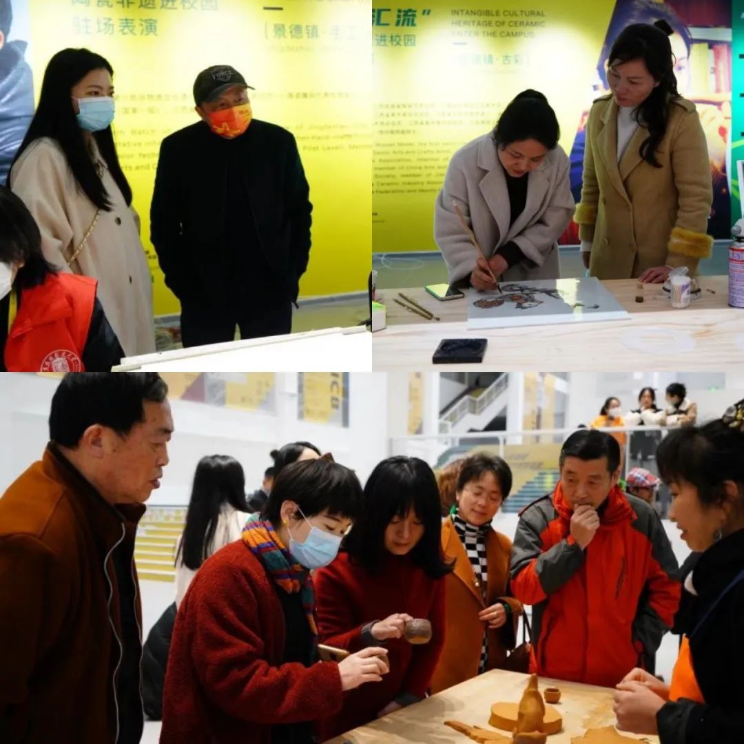 活动首先参观了设于三宝国际文创中心的2021景德镇国际陶瓷艺术双年展同期的平行展和景德镇国际当代陶瓷绘画提名展。随后参观了设于景德镇陶瓷大学美术馆的“瓷的精神--2021景德镇国际陶瓷艺术双年展”。并观看了设于展览一楼的平行系列活动“百川汇流”陶瓷非遗进校园驻场表演,其中包括古彩、手工雕刻、拉坯、捏雕等非遗文化的表演。