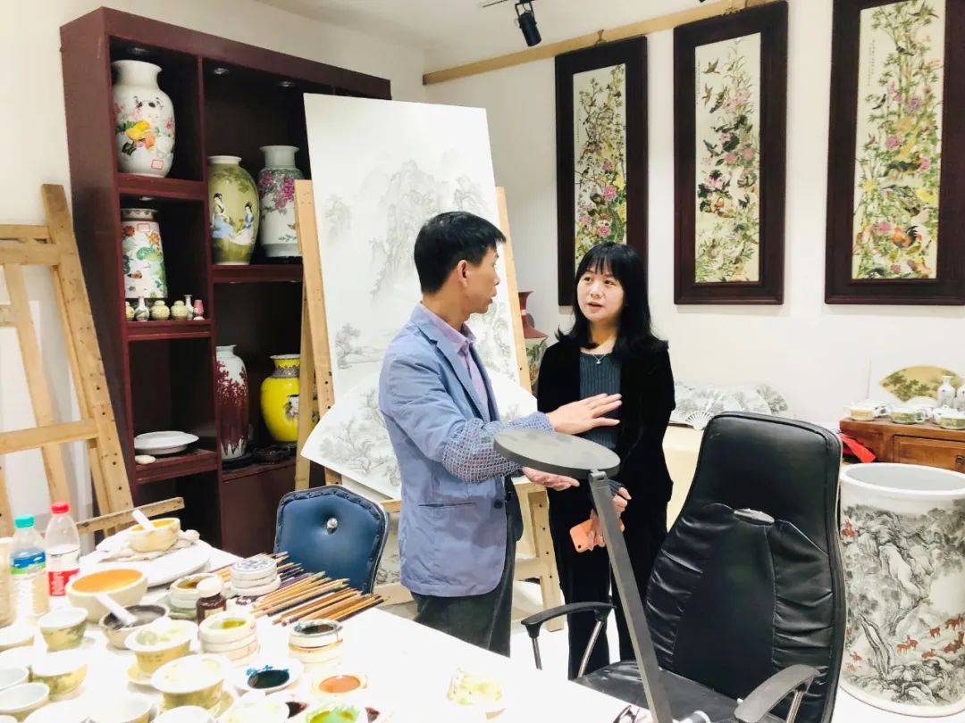 实地调研中,谢景玉一行实地走访了景德镇鼎窑瓷园文化传媒有限公司、景德镇市古雅彩陶瓷艺术研究所,认真了解其生产、制瓷、销售等情况,参观了制瓷区、绘画区、烧制区、展示区等区域,并与企业负责人进行交谈,听取其关于企业生产、研发及销售等情况的介绍,了解企业发展面临的问题和下步打算。