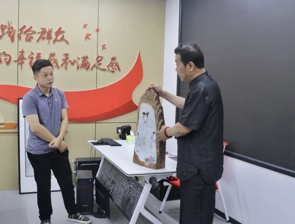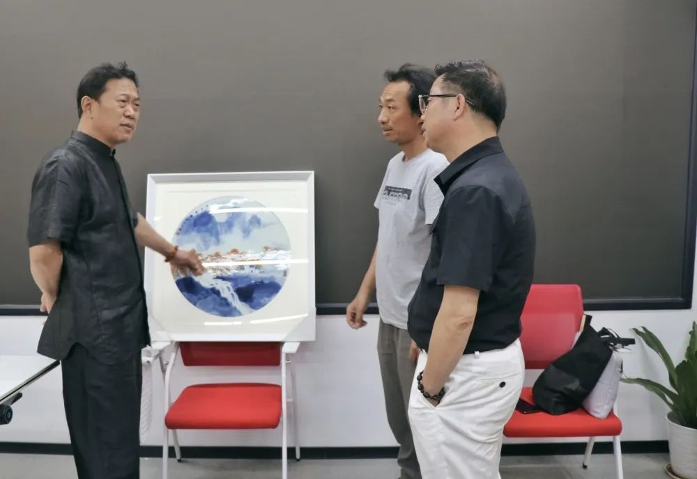 在点评环节,刘教授耐心倾听了盟员代表的创作思路,对他们的陶瓷美术作品逐一进行点评,并提出了多维度、专业性强的意见建议。