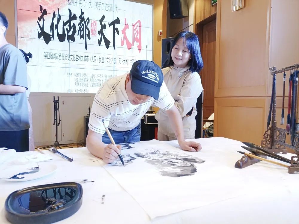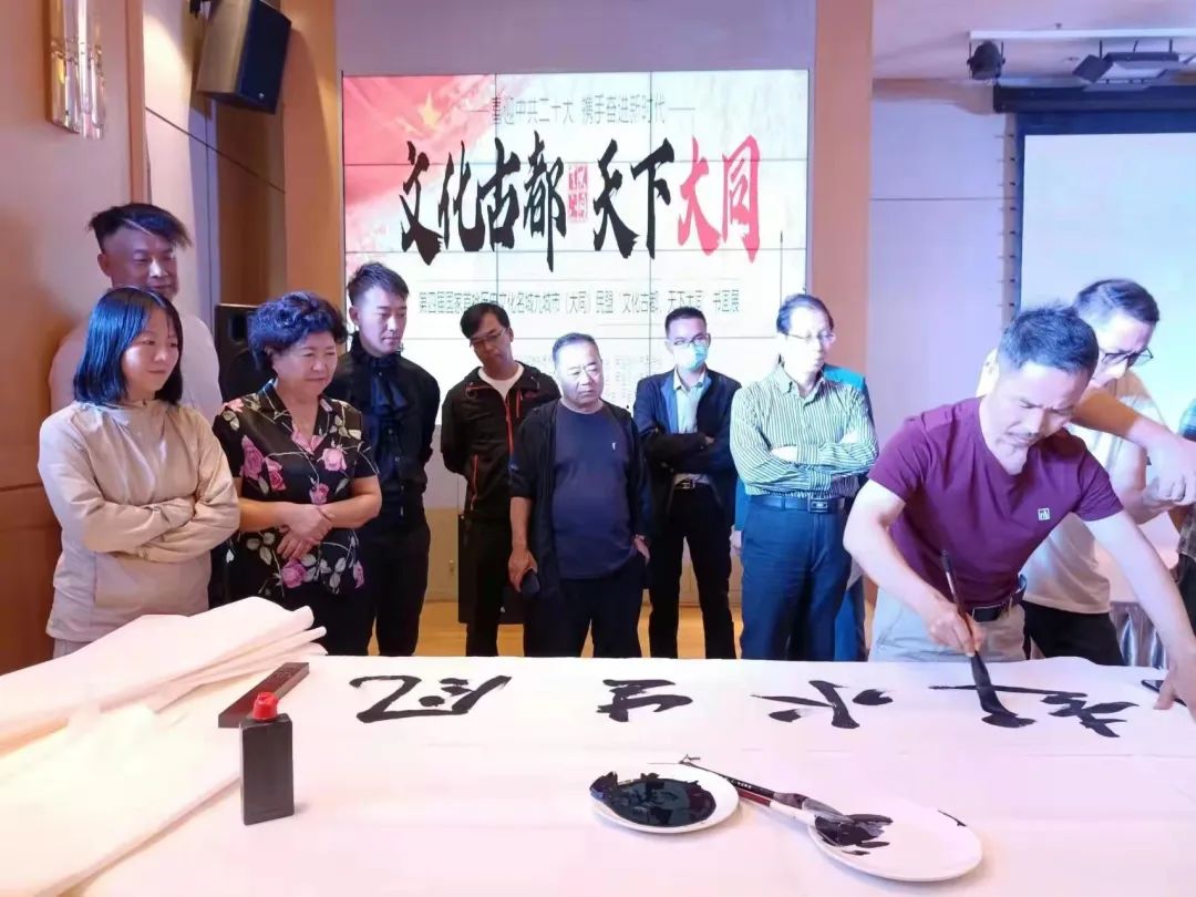 8月18日,民盟市委会主委、市文联主席谢景玉,民盟市委会副主委耿丽萍一行赴山西大同开展文化交流活动。来自开封、绍兴、荆州、大理、大同、泉州、桂林、承德、景德镇等九城市的盟员书画家们参加活动。