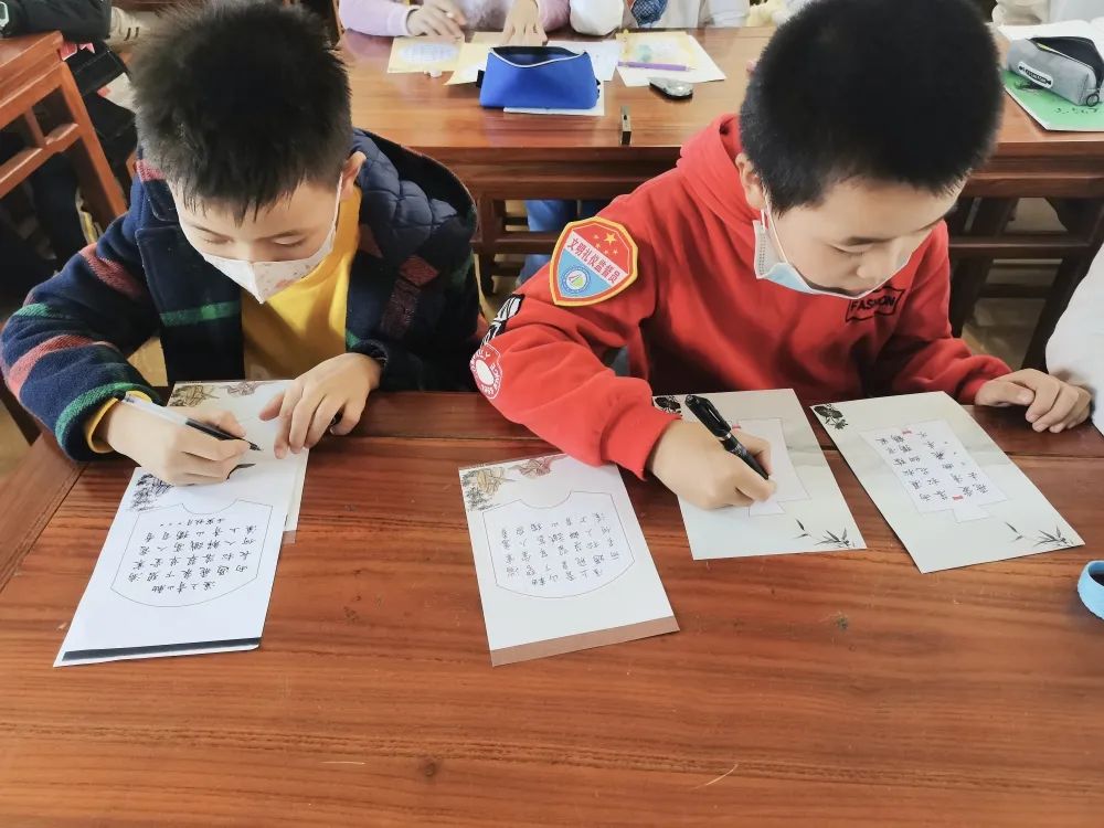 活动中,盟员书法老师们围绕“喜迎二十大”主题,为学生们开展了一堂精彩的书法课。通过书写示范和耐心指导,教学生们硬笔书写爱国诗词,感悟传统书法艺术,激发爱国热情。课堂上,盟员书法老师们生动地讲述了自己对书法艺术的理解和认识,对书法学习过程中如何练贴、临摹等知识进行了深入浅出的阐述,并对学生们的作品进行一一点评讲解。