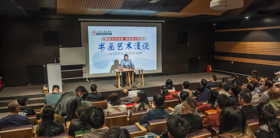 10月25日下午,由景德镇市文学艺术界联合会、民盟景德镇市委会、景德镇陶溪川文创街区主办的市文联文艺公益大讲堂书画专场讲座在陶溪川旗舰店二楼报告厅举行。中国书法家协会副主席,中国美术家协会理事,西泠印社社员,民盟中央常委、江西省政协常委、江西省文联副主席、江西省书协主席毛国典,以“书画艺术漫谈”为题作了一堂精彩讲座。市文联主席、民盟市委会主委谢景玉主持讲座,市文联党组成员、副主席曹筱娜,市文联有关协会会员代表、市民盟盟员代表约100人聆听讲座。