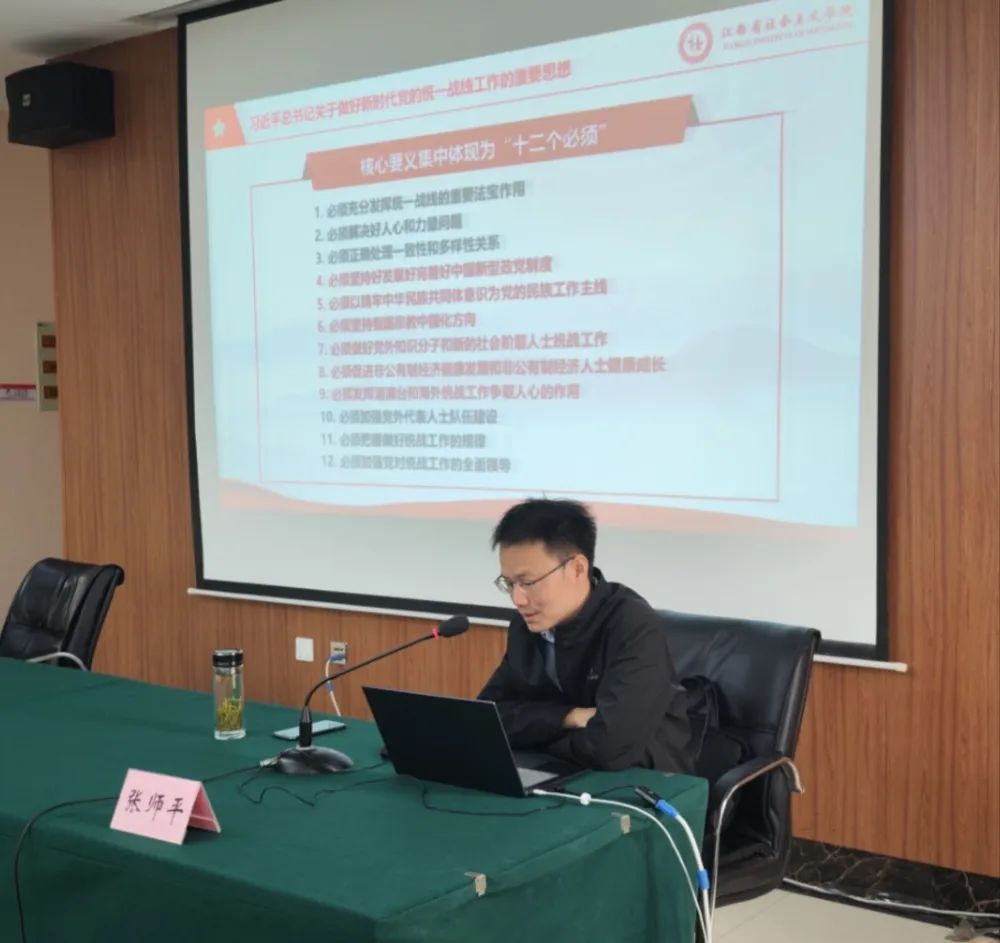 省社院教研室副教授张师平作了《习近平总书记关于做好新时代党的统一战线工作的重要思想》专题辅导,帮助学员们牢牢把握新时代爱国统一战线的历史方位和重要使命,激励学员们围绕新时代新征程的中心任务凝心聚力,为全面建设社会主义现代化国家而团结奋斗。
