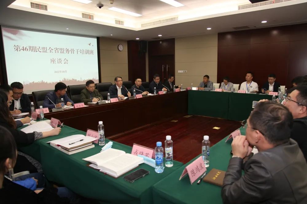 10月11日下午,在民盟省委会机关召开了第46期民盟全省盟务骨干培训班座谈会。民盟省委会专职副主委刘新农出席并讲话,秘书长兼宣传部部长刘文萍主持会议。