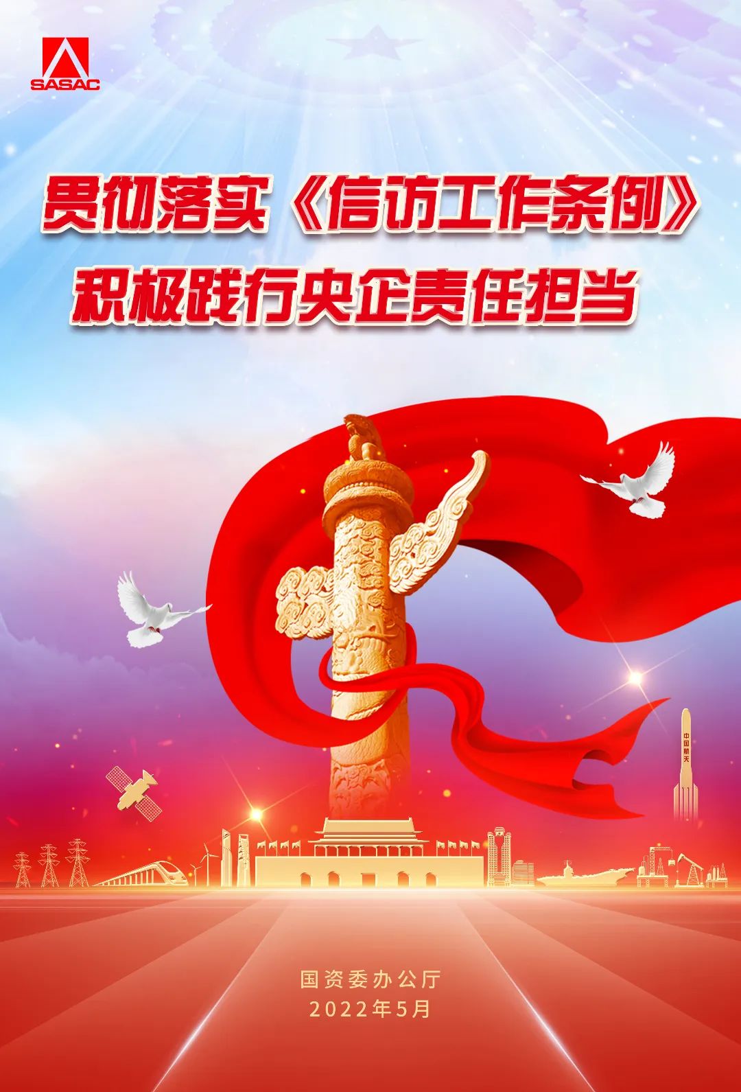国资委办公厅组织开展主题为“贯彻落实《信访工作条例》,积极践行央企责任担当”的宣传月活动,推动委机关和各中央企业深入学习宣传贯彻《条例》精神,不断提升国资央企信访工作水平,营造办事依法、遇事找法、解决问题用法、化解矛盾靠法的良好环境。