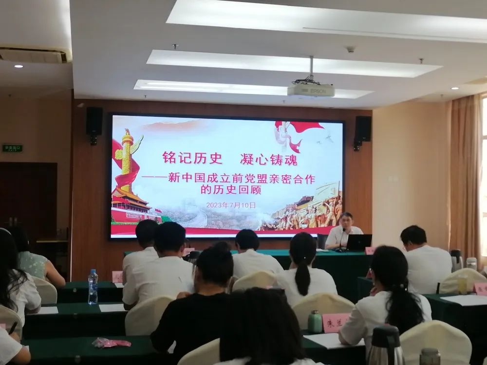 7月11日晚,培训班与第33期民进全省基层骨干会员培训班联合举办了“凝心铸魂强根基、团结奋进新征程”主题班会。民盟省委会专职副主委刘新农、组织部部长肖剑峰,省社院副院长李卫红、教务处处长魏文胜等出席。学员精心准备了独唱、合唱、朗诵、京剧、弹奏等五个不同类型的节目,巧妙地将主题教育融入节目之中,带来了一场视听盛宴。
