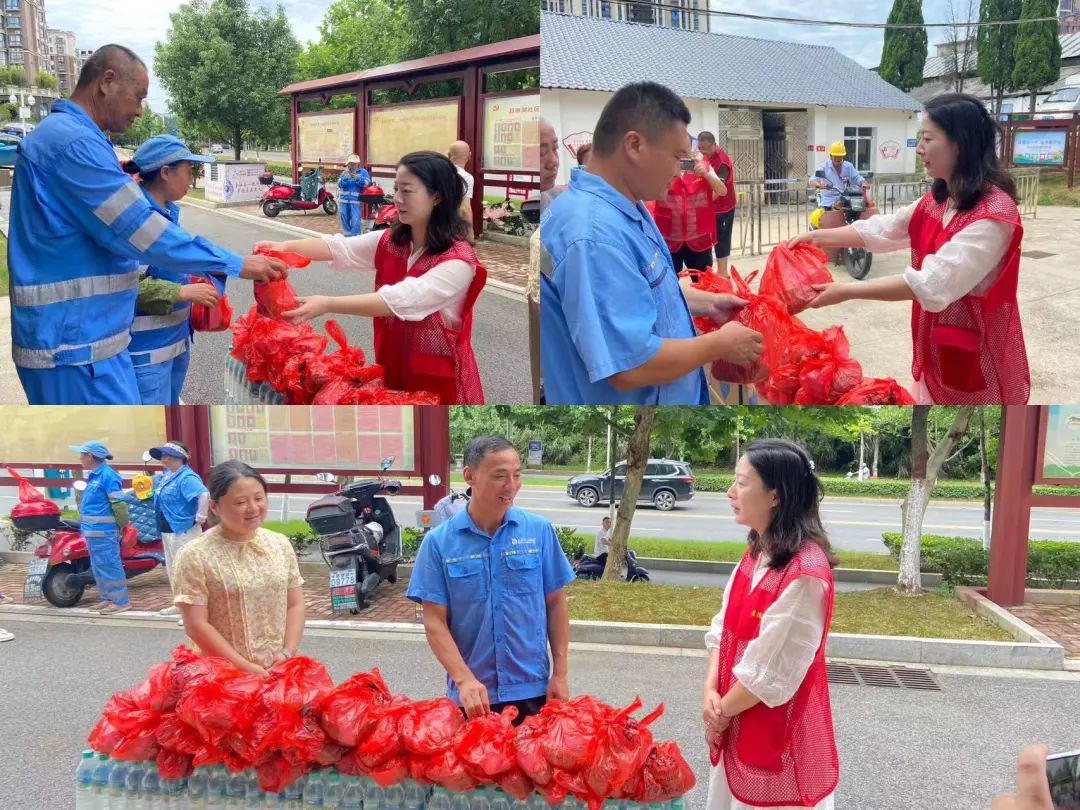 炎炎夏日送清凉,丝丝关爱入心田。近段时间连日高温,酷暑难耐,仍有许多环卫工作者们坚守在一线,用他们的汗水维护着城市的卫生环境。