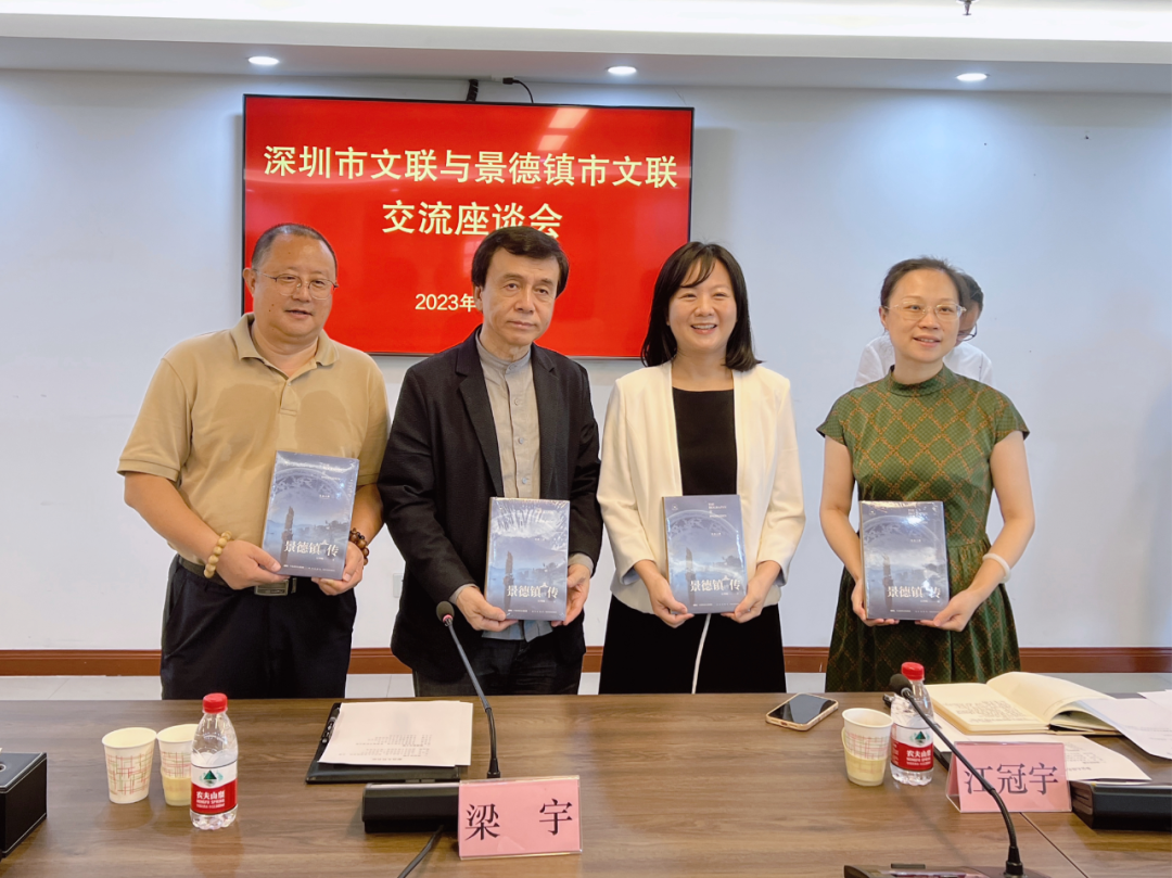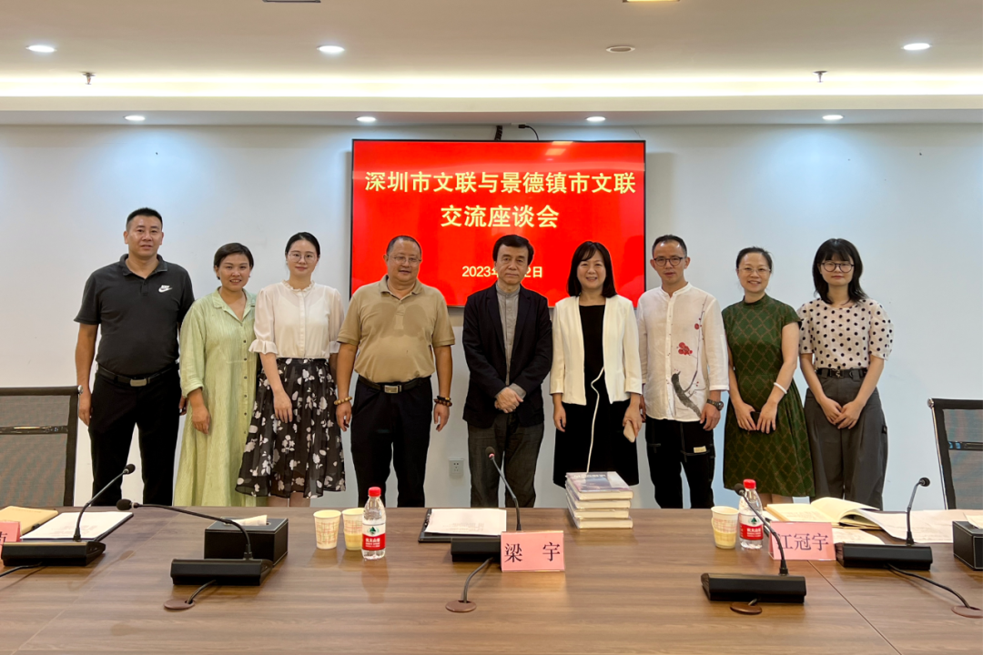 8月2日上午,调研组一行和深圳市文联举行了座谈会,广东省文联副主席,深圳市文联党组书记、主席梁宇参加会议并讲话,副秘书长、组联部主任江冠宇,二级调研员易贞和二级主任科员赖旭辉参加了座谈会。双方交流了文联工作和文艺促进当地经济社会发展的经验做法,并在加强两地文联系统工作交流、高质量推进文艺事业繁荣发展的合作上达成了初步共识,同时调研组还向深圳市文联赠送了《景德镇传》,宣传景德镇的陶瓷文化。