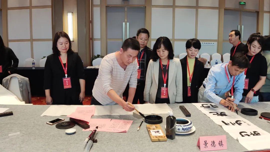谢景玉一行先后参加了书画笔会和历史文化名城文化交流会。书画笔会现场,景德镇民盟的书画家们挥毫泼墨,饱蘸深情,以笔会友,以画沁心,各展其长,与九城市书画家共同交流创作经验,一幅幅精美的作品跃然纸上,浑厚凝重,苍劲有力,饱含着对祖国的深厚情感,让大家更加深刻的感受到书画艺术作品的魅力。