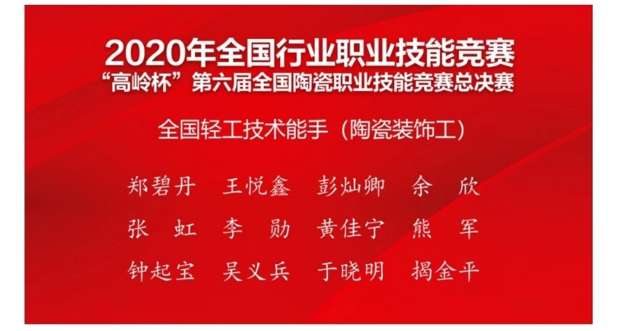 2020年全国行业职业技能竞赛“高岭杯”第六届全国陶瓷职业技能竞赛结果公示,我市陶美一支部两位盟员江西省工艺美术大师熊军、江西省技能大师吴义兵荣获全国技能大赛,由中国轻工部颁发的全国轻工技术能手(陶瓷装饰工)称号!民盟景德镇市委会向熊军、吴义兵表示衷心的祝贺,感谢他们为民盟组织事业添砖加瓦!