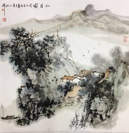 从左上、左下到右依次为国画精品《抱香》、《山居图》和《山水》。