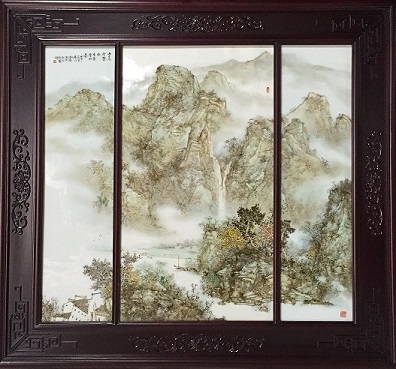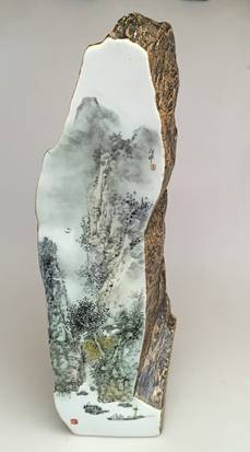 粉彩瓷板《山高水长》