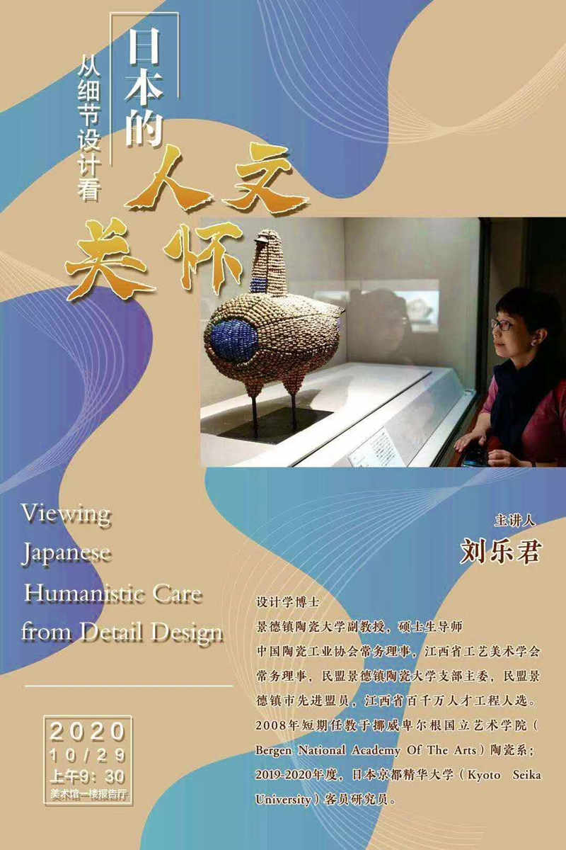 近日,景德镇陶瓷大学刘乐君副教授,博士在景德镇陶瓷大学美术馆一楼报告厅举办了主题为“从细节设计看日本的人文关怀”专题讲座。讲座由景德镇陶瓷大学科技艺术学院美术系副主任鲁瑜主持,副院长舒期梁,教务部部长胡文俊出席,美术系各专业师生代表共计200余人到场聆听。